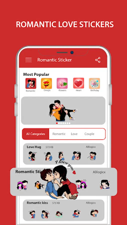 - Download and open this romantic sticker app