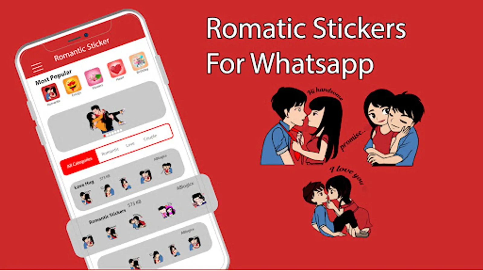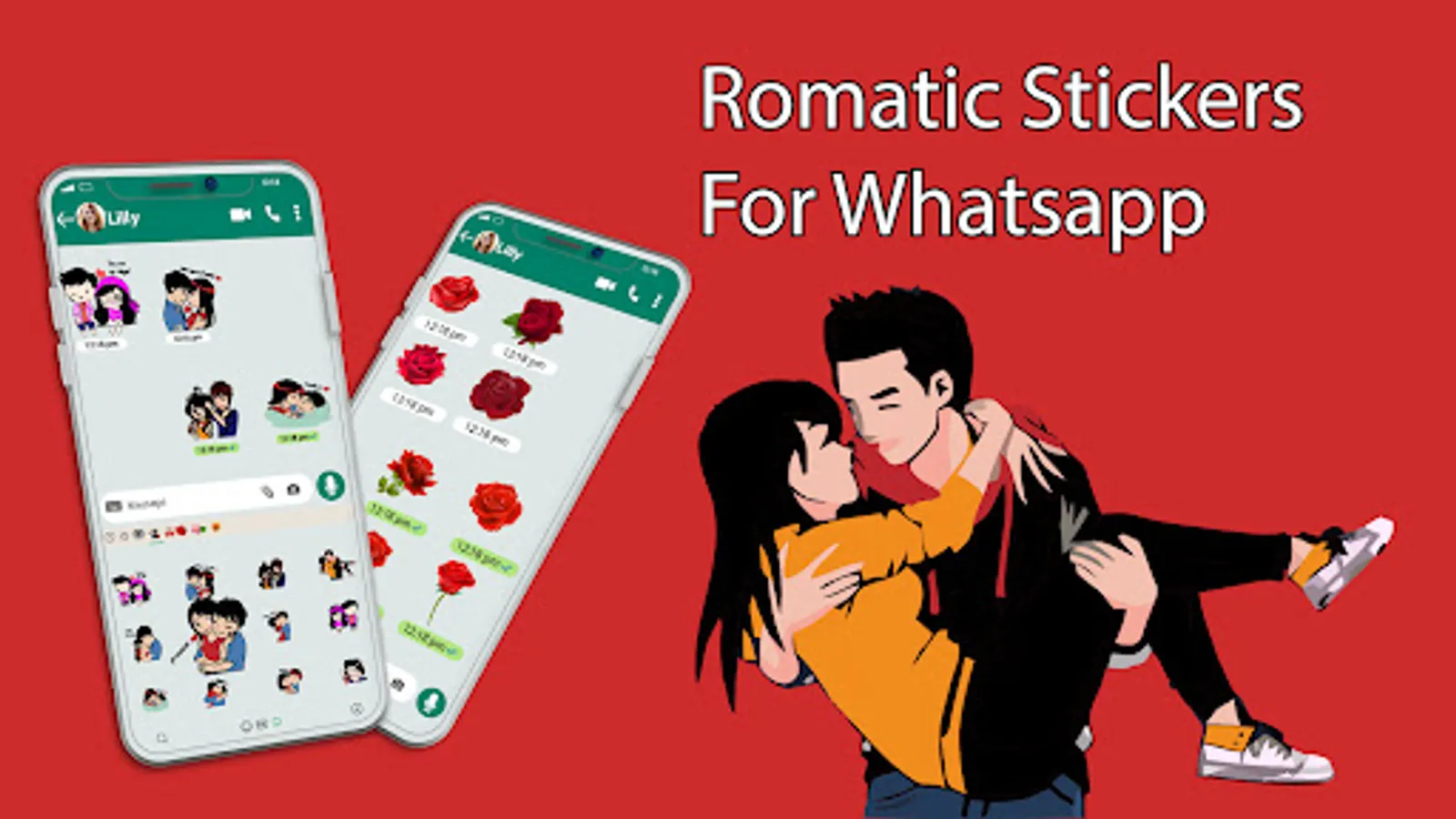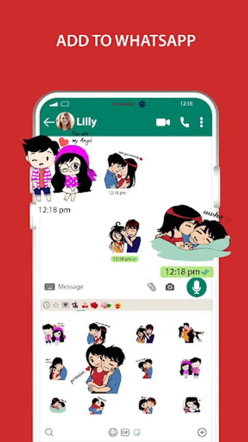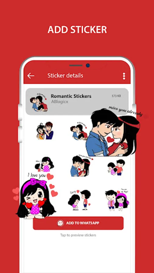 Romantic couple stickers for WhatsApp express your love for whatsapp messaging.Couple in romantic poses , such as holding hands, hugging stickers, or kissing stickers.Romantic love stickers for whatsapp for expressing love and appreciation to your lover.