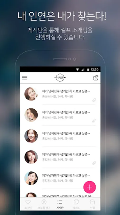 * You can go on a self-blind date by discovering the opposite sex you like through the bulletin board or by writing a post yourself.
