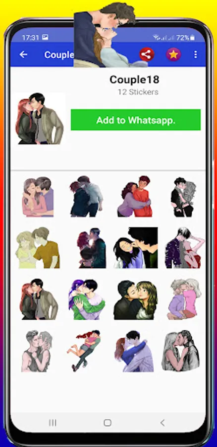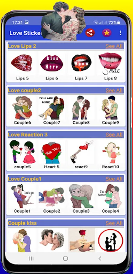 Love stickers for Whatsapp - couple kiss stickers is the best app for chat. If you want to surprise your friends then you need to use this app. Send these stickers to your friends and Love lovers make chat fun.