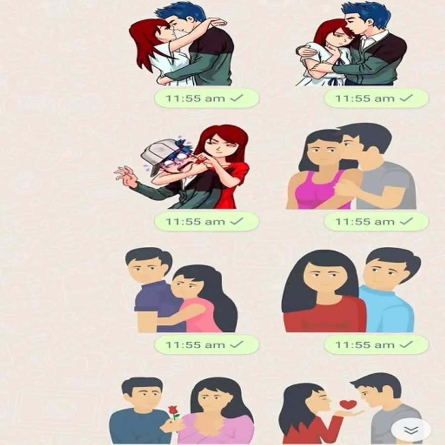 Show more love and express your love with the new collection of love ,kiss stickers,flirting, women love stickers romantic love stickers for WhatsApp. Share these love smileys for whatsapp Romantic WAStickerApp with your love partner and make your chat more hot and lovely. With this love stickers apps you can express your lover better and have a lovely chat with your lover. You can download all stickers free for whatsapp !