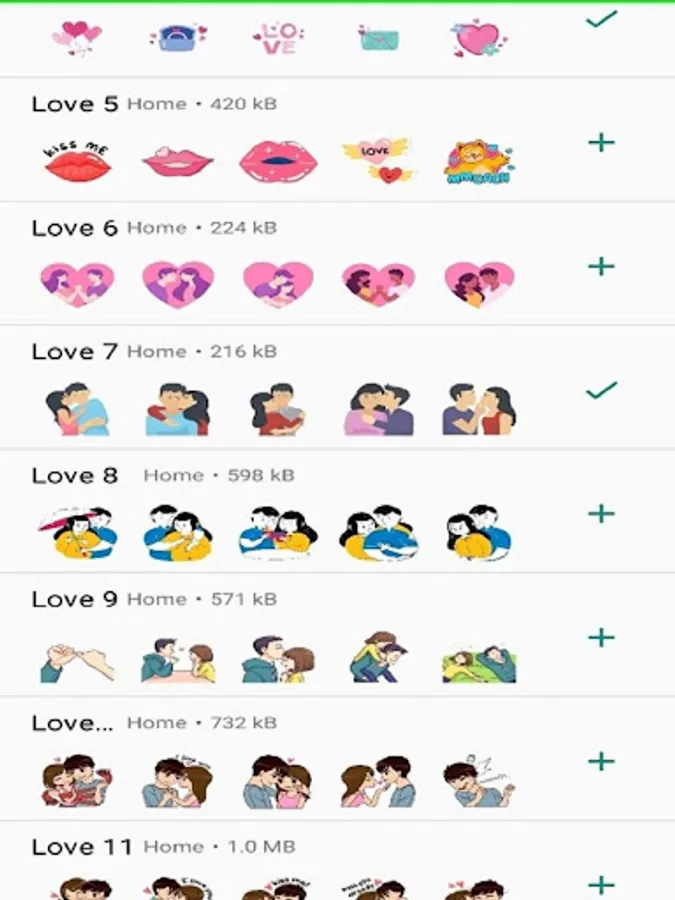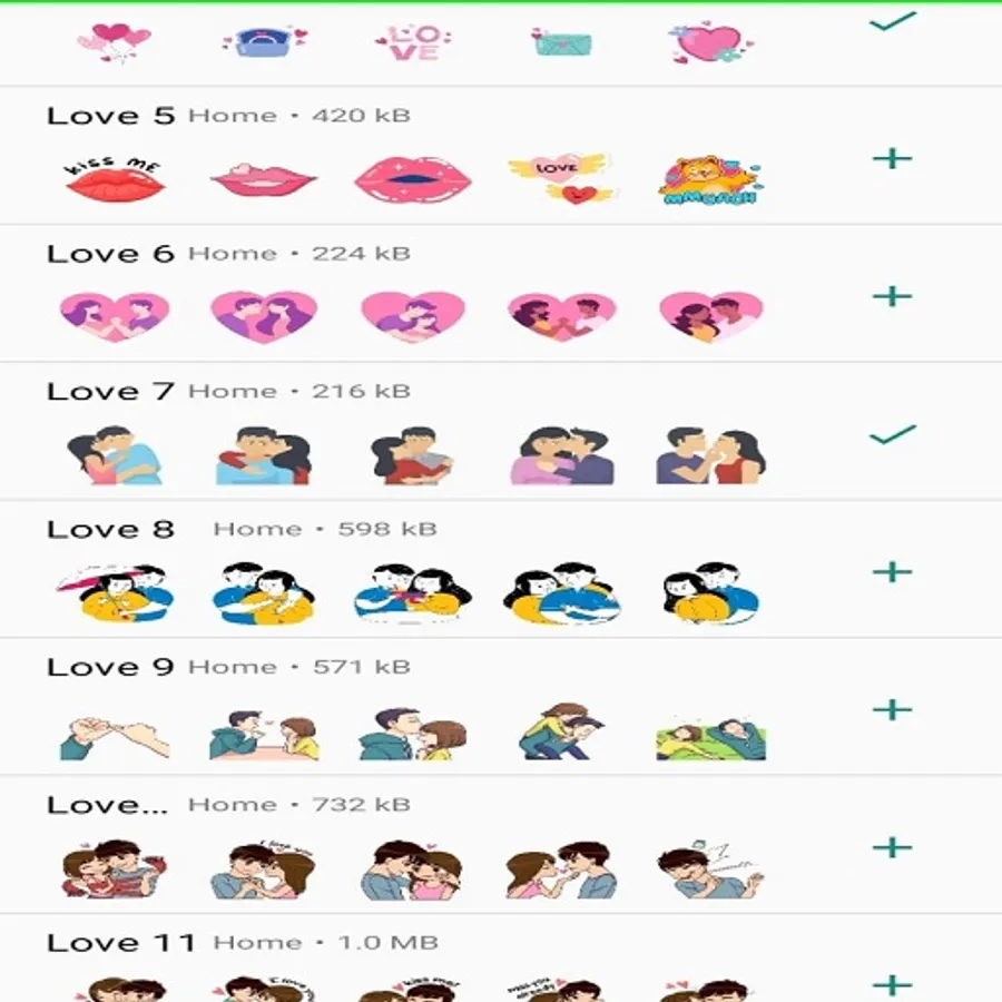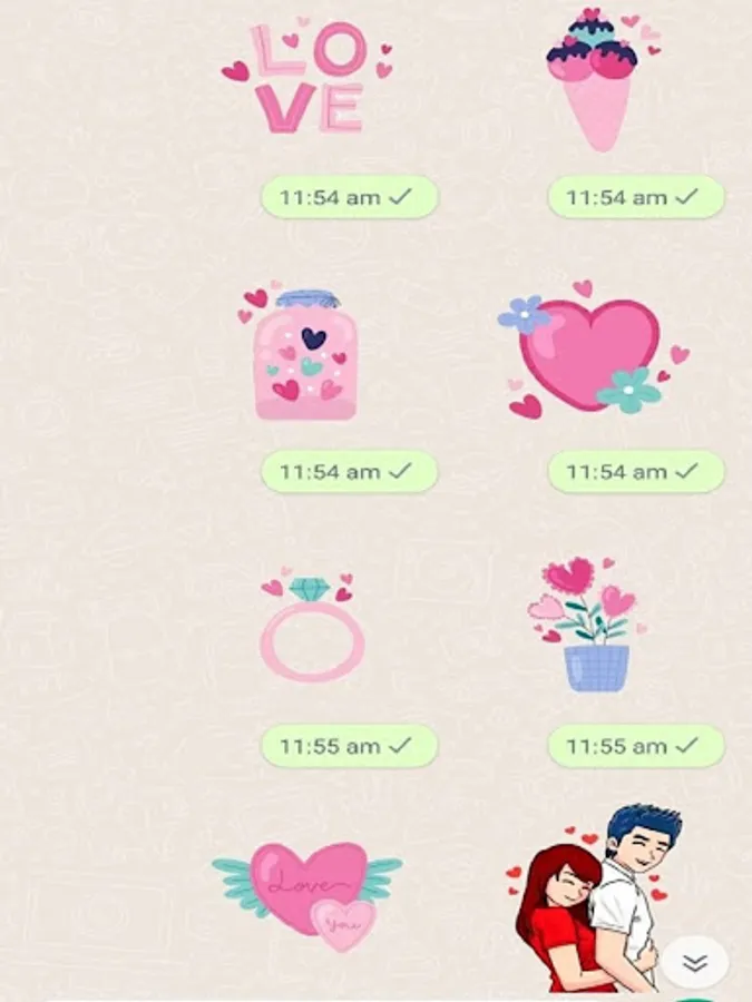All stickers divided into categories like Love stickers, Flowers stickers, Kissing stickers, Heart love stickers, Greetings stickers, love GIF stickers ,romantic feelings, Happy Holiday stickers, valentine stickers , purposel stickers, couple stickers for whatsapp, love romance , caring love stickers so it will be very easy for you to find it. you can say your lover “I lover you” do you love me? I can hug you? Hug stickers,I miss you. you can wish a romantic and lovely “Happy Valentine's Day“ to your love.