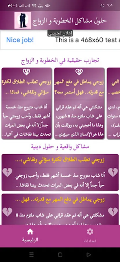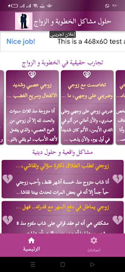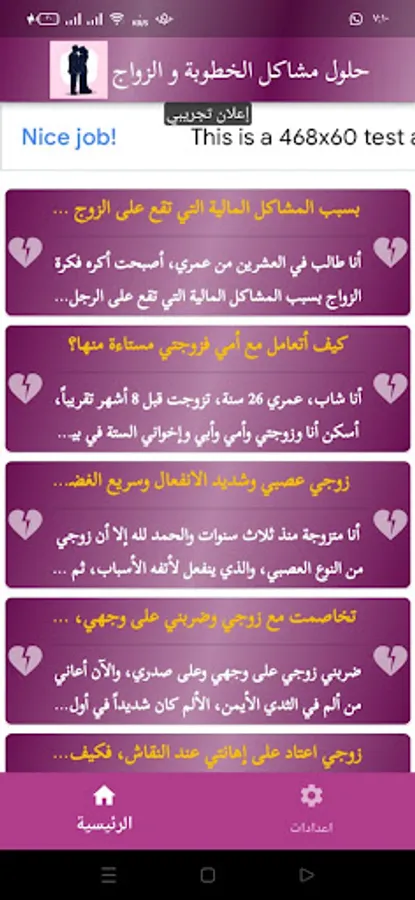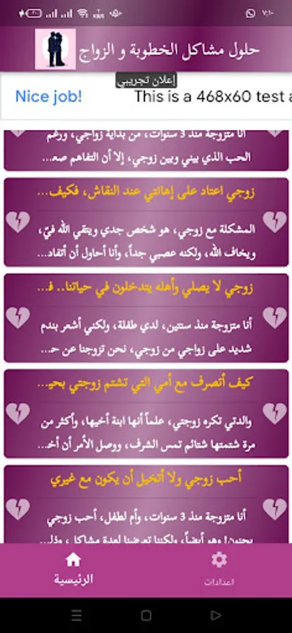It is an application that includes several consultations in real experiences for engaged and soon-to-be-married couples, and responds to these questions and inquiries by a professor of family relations, so that many people raise their marital problems, and specialists provide a set of marital advice in order to maintain the marital relationship and the continuation of the engagement The consultations include a range of important topics such as the way the wife is treated, the wife's obedience to her husband, the husband's rights over his wife and other important topics, and how to maintain the rules of engagement and marriage without problems in order to guarantee you the continuation of the engagement.