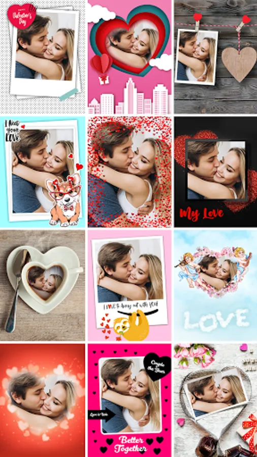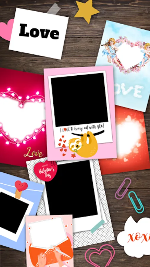 Photo editor with variety of love photo frames and stickers. Valentine's Day photomontage