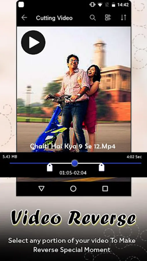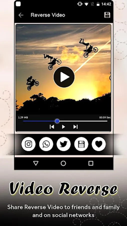 This video reverser app reverses a video without affecting its quality. Also, use the video speed option of this video editor, in order to make slow and fast motion videos.