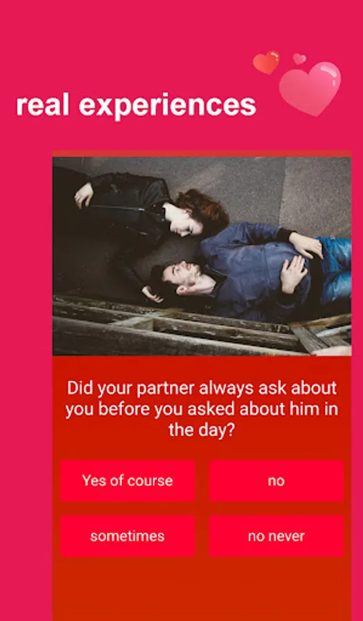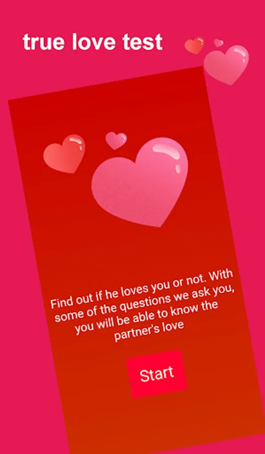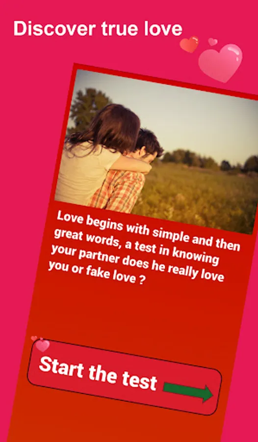 Our application is a love test for your partner. We ask you some questions and you will discover if the love is real or fake between you.