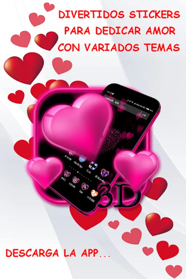 The categories that you will find in the application are: love hearts, kisses, love animals, love ..., and broken hearts so that you can send different messages without writing words, it is very easy to use and fun !!!