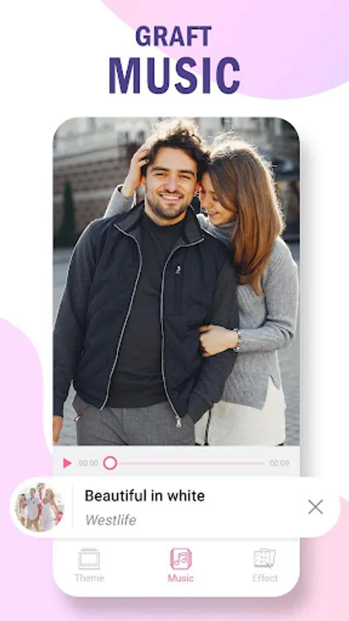 - Create love videos from photos and music: create love videos by selecting multiple photos and choosing love background music, the video will be created by displaying photos and combining the love songs you have chosen.