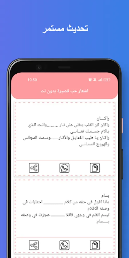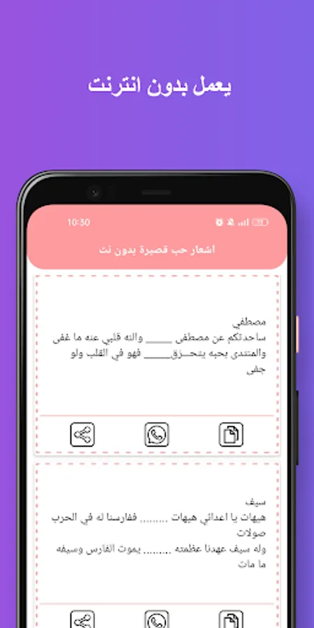 The application of romantic love letters without the net is one of the best and most beautiful applications that includes a large and varied collection of poetry that is told in a simple and non-repellent way, and this application is considered the faithful assistant to every person.