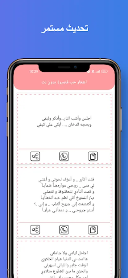 It contains messages that are characterized by beautiful feelings and delicate feelings, categorized as longings, love, romance, and other chapters in an easy and simplified way. The program offers you a large collection of the latest love and romance messages. For the one you love, it can be sent via social media such as WhatsApp or Facebook, then the application is designed especially for the Arab world in a simple and understandable way for everyone, taking into account the facilitation of access. Egyptian, Saudi and Gulf love letters are always renewed to serve all lovers. Are there any of the most beautiful words of love, love and poetry for us to dedicate For those we love and adore in our lives.