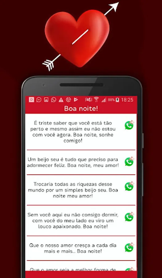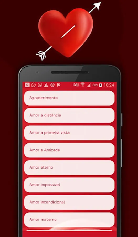 The "Frases de amor" application is the ideal tool for anyone looking for inspiration to express feelings and emotions. With tens of thousands of phrases organized into categories such as boyfriend, crush and special dates, the application allows you to easily find the perfect message for every occasion.