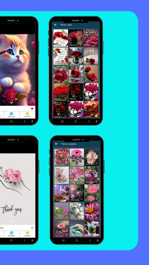 Are you a flower lover and looking for beautiful images to share with your loved ones or to beautify your screen? This app is perfect for you! "Rosas y Flores Hermosas" will immerse you in an oasis of colors and natural fragrances.