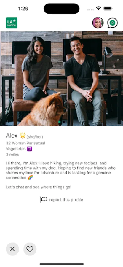 LA Match is a space for everyone to help find your love(s), bff(s), or work partner(s)… With a simple interface, ONLY good vibes, and zero distraction. Try LA Match for free as much as you want, and you decide!