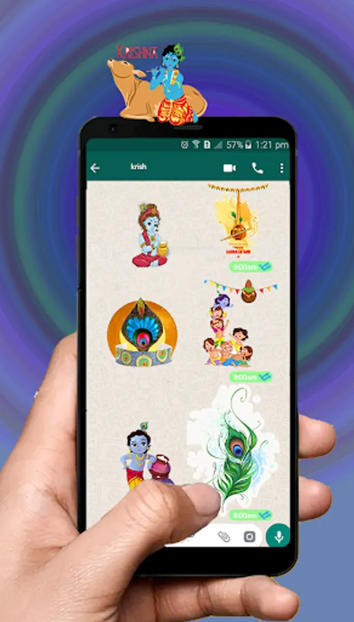 WhatsApp sticker sharing is now a new and cool feature and you can share Lord Krishna stickers your friends and family WhatsApp group.