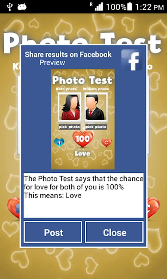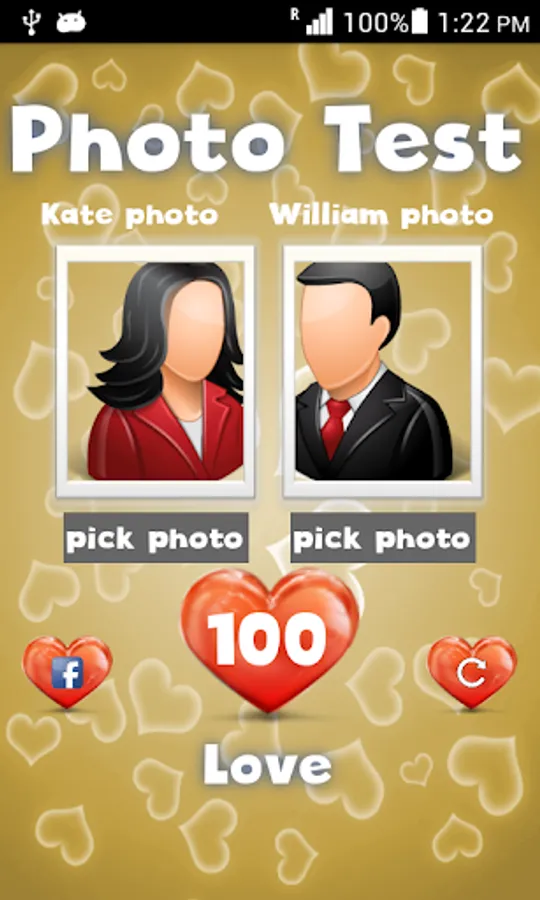 This Love Test Photo Scanner scans the photos (1) of two people and calculates the love percentage for them by using a sophisticated algorithm.