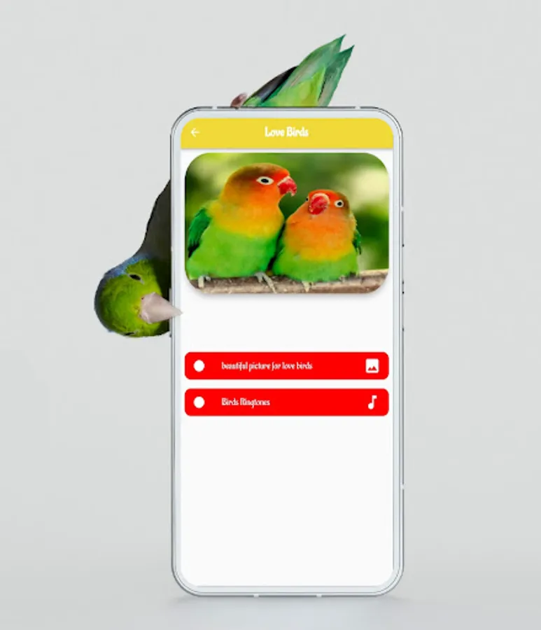 Love Birds application contains the most beautiful pictures of birds and ringtones with