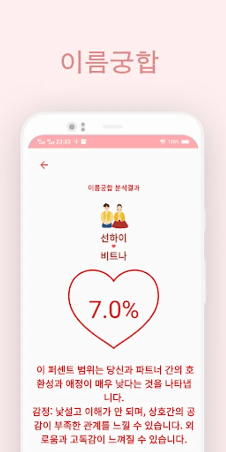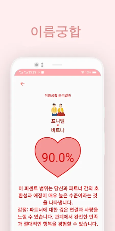 With my name and the other person's name, I can see compatibility, have fun, and laugh