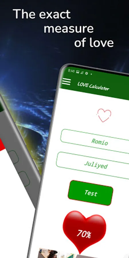 Special Note: This app is for entertainment purposes only. It can never measure true love. Because, love cannot be measured, it can be felt.