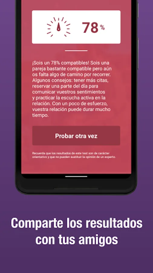 💘 Share the results: send that person or your friends the results of our love game. Share with them how compatible you are!