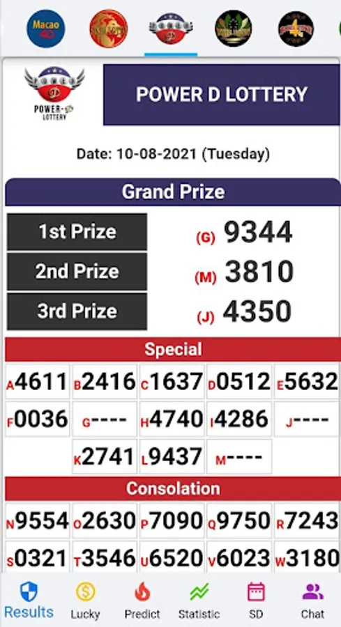 Macao 4D, SingaLotto,101 Results, Power -D, Booms 4D).