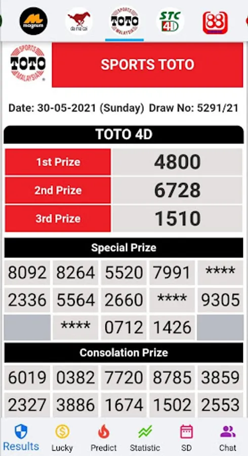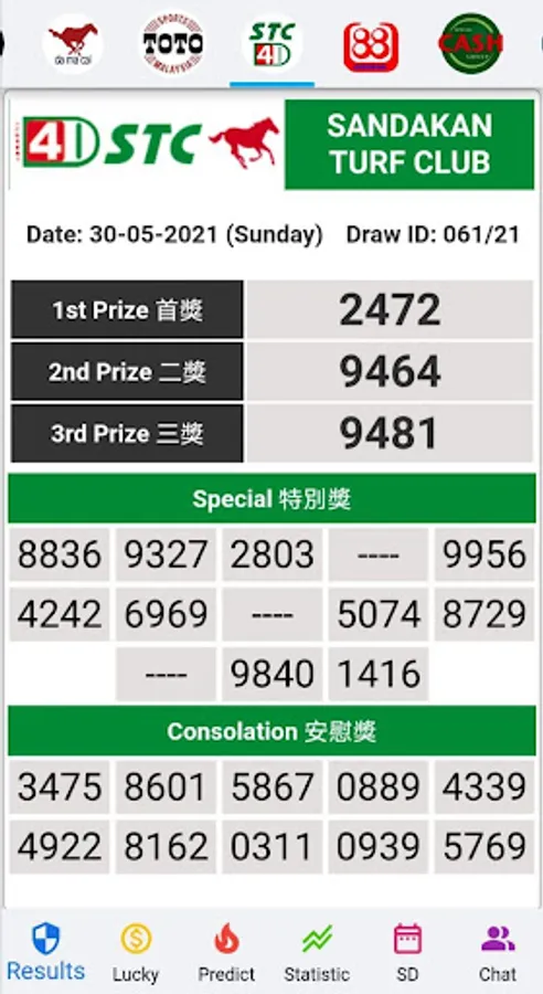Live Draw Results features support WEST AND EAST MALAYSIA results from Magnum, Sports Toto, Da MA Cai, Sandakan and Sarawak Cash Sweep.