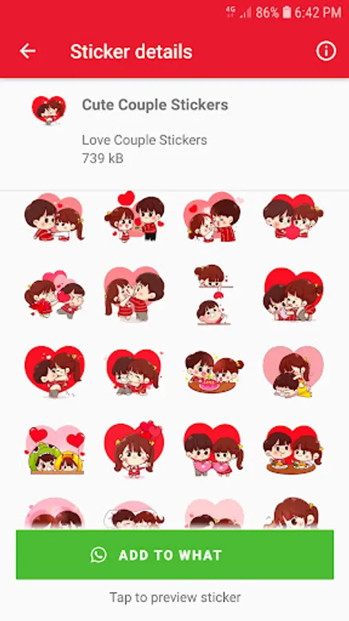 Find famous couple packs like Couple Heart, Love Couple Flowers, Cute Couple Flowers, Couple (Rose...), Cute Couple Stickers, I Miss You, Love Couple Stickers, Greeting (Good Morning, Good Night, Hello Couple etc.), Happy Birthday Love, Love Heart Flowers, I Love You, You And Me, My Love, Happy Rose Day, Happy Propose Day, Happy Chocolate Day, Happy Taddy Day, Happy Promise Day, Happy Kiss Day, Happy Hug Day, Happy Valentines Day, Cute Young Couples, Wedding Cute Couple, Love Emoticons, Holiday(Happy Valentine's Day, Christmas, Happy New Year), Love Couple Reaction, GIF sticker and much more. This app contains a Large number of Love Couple Stickers 2023 & Couple for StickerApps