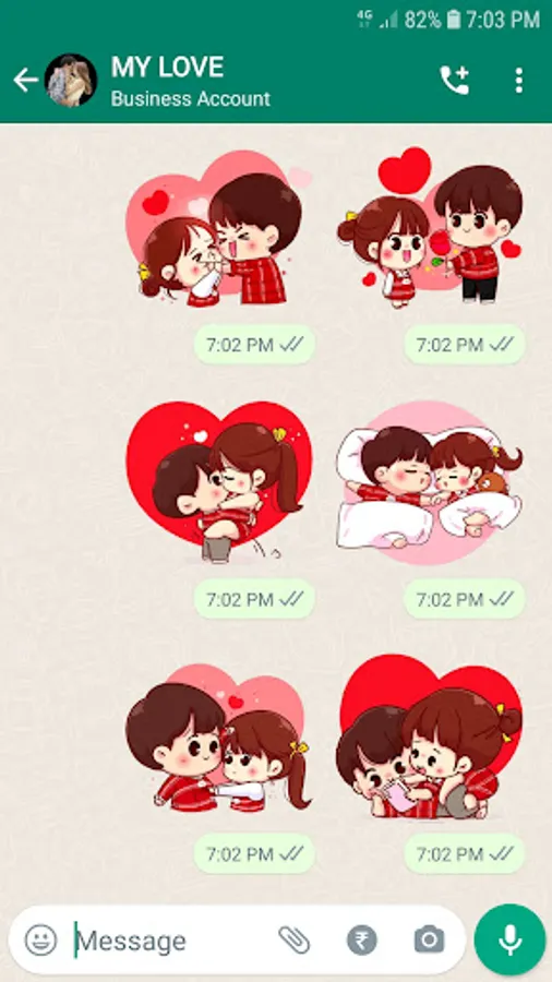 Use stickers for WASticker and add love couple stickers, Valentines Day Stickers, romantic red roses stickers, heart flowers stickers, Cute Couple Stickers, Love Couple Stickers and I Love You stickers to your chat.