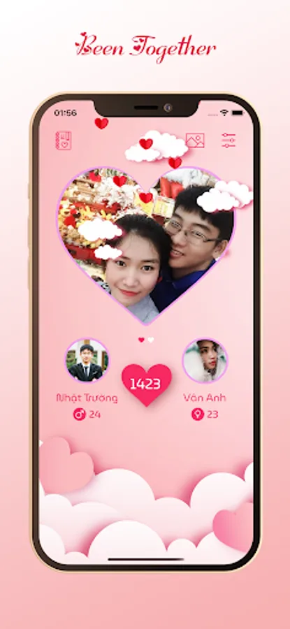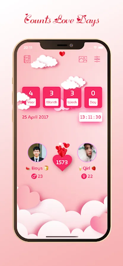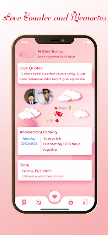 + Displays been together days, love counter, relationship counter.