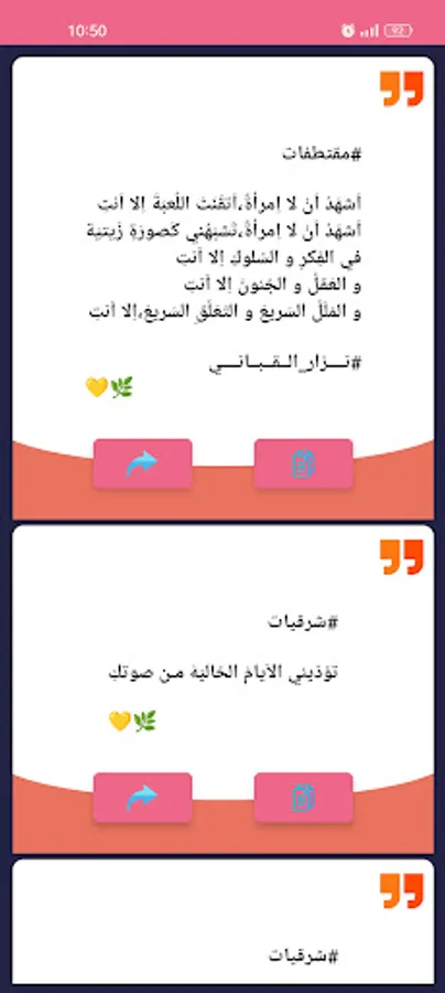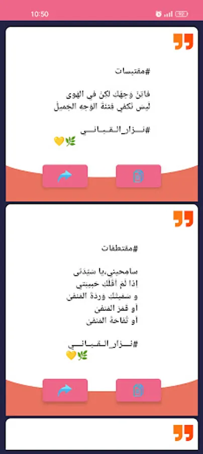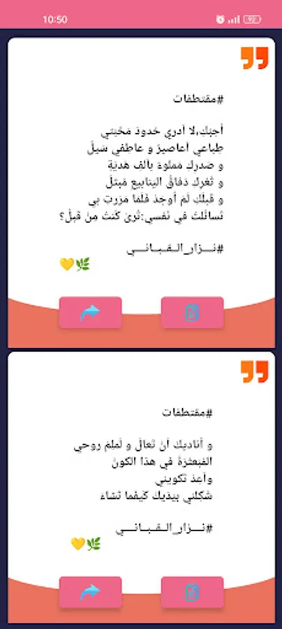 The application of Nizar Qabbani's love poetry and spinning will present you with the most beautiful love poetry and the most beautiful poems, sad poems in love, composed for the best message to my beloved, love letters, which are messages that bring lovers closer together and increase the degrees of true love scale with my beloved and romance