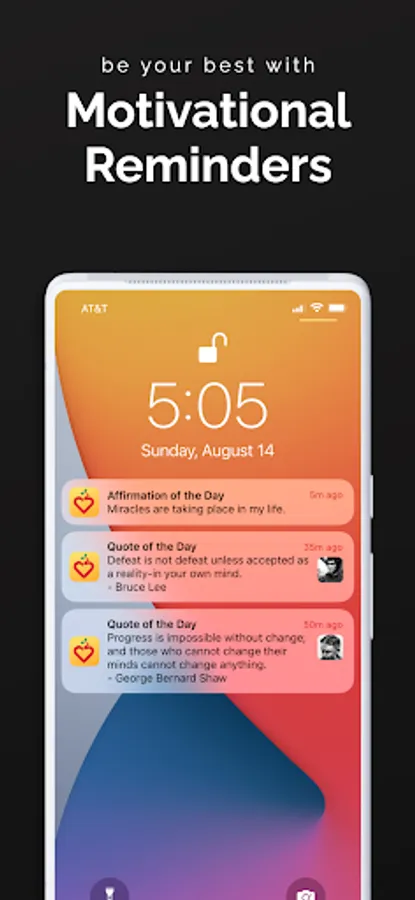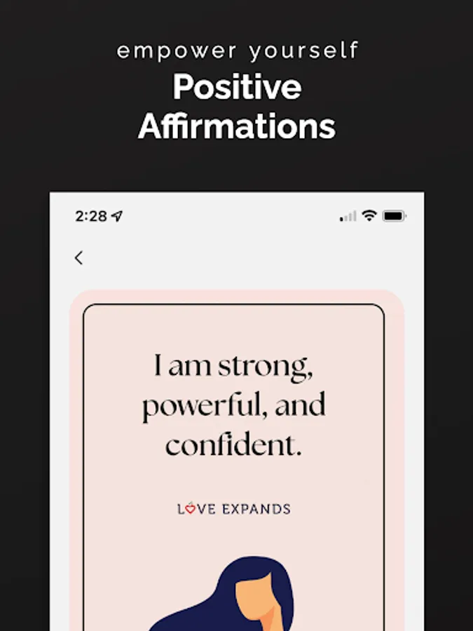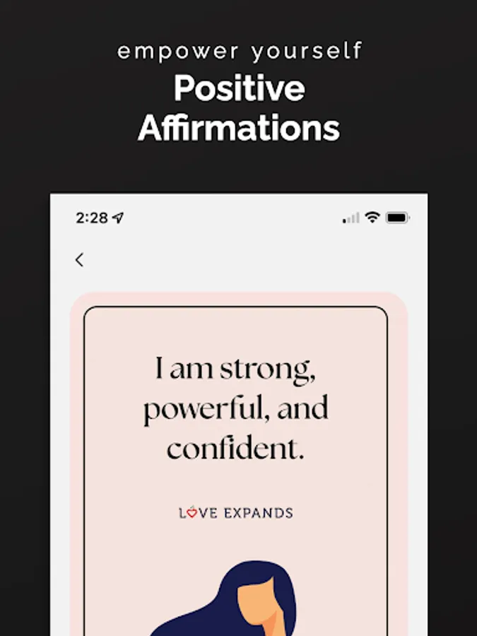+ Set reminders to receive one or more daily positive affirmations of the day for a positive mindset filled with self-love & daily encouragement