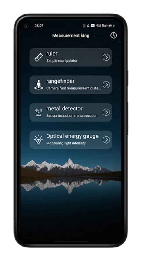 Measure King is an intelligent measurement tool set application, which integrates a variety of daily measurement tools, including rulers, light energy meters, metal sensors, distance meters, etc. "Measuring King" utilizes various sensors on the mobile phone and deeply optimizes algorithms to not only realize the functions of traditional tools such as distance measurement, speed measurement, and angle measurement, but also make these tools more efficient and intelligent. Come and turn your mobile phone into a universal toolbox!