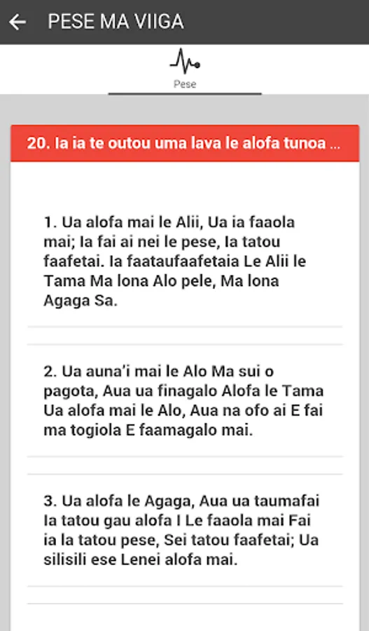 The Pese app is the official and well-known Samoa hymnal used by many Samoa-speaking churches around the world for worship.
