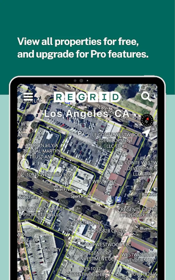 Loved by millions, the Regrid Property App is a map-based solution that unlocks the world of land and property information to anyone with a smart phone. Tap a property to easily view property data and parcel boundaries for 156+ million parcels covering over 99% of the US population.