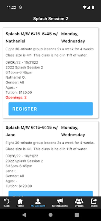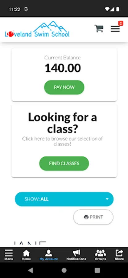 The Loveland Swim School app will allow you to manage your lesson schedule, access registration, and receive quick updates. You'll also be able to see upcoming events and weekly reminders.