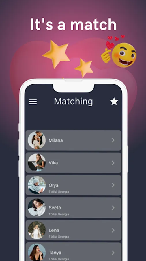 Thanks to our app, meeting new people occurs quickly and effortlessly. You can easily browse through the profiles of other users and send them chat messages to initiate the acquaintance process. Our app also provides various features to help you plan and organize real-life meetings with your new acquaintances. You can arrange a one-on-one date to get to know each other better.