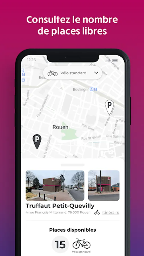 ◉ Consult in a few clicks the places available in the bike shelter of your choice and visualize the free places according to your type of bike: classic, equipped with a baby seat...