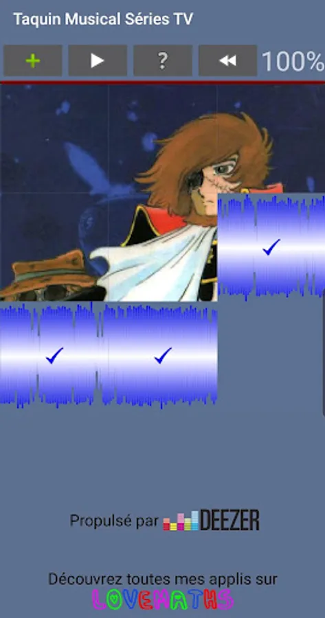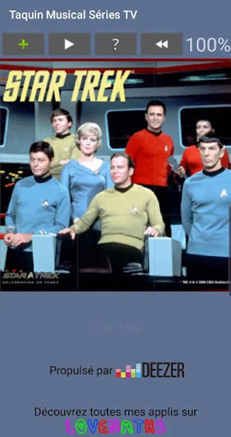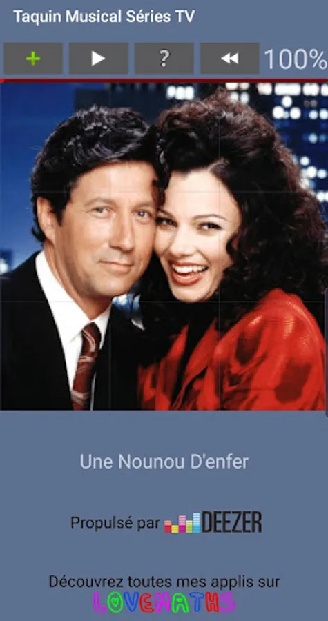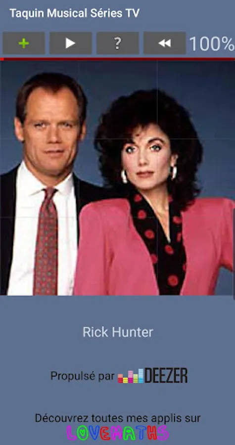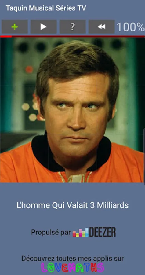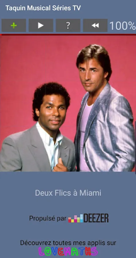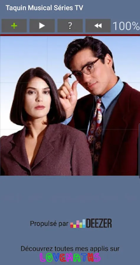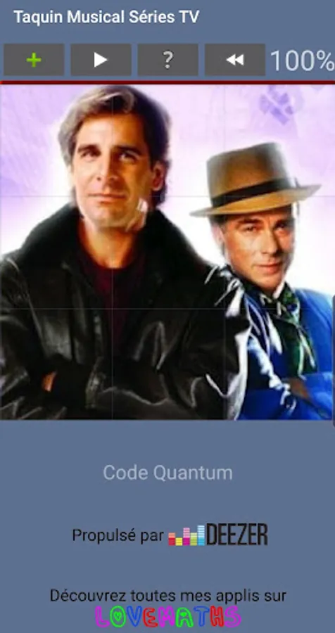 Happy days, Dallas, bowler hat and leather boots, K 2000 or Malibu Alert ... Do these titles tell you anything? So welcome to the world of TV series! This app chooses a generic TV show from the 70s to the 90s and creates a puzzle by mixing excerpts. Simply solve the puzzle to find the series in question. Press the '+' button to start!