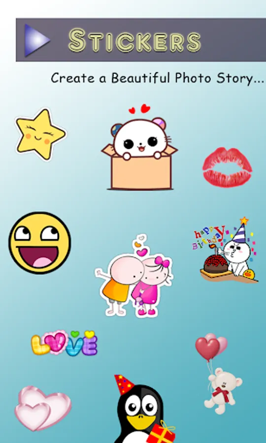 - Stickers –more than 30 stickers With Touch Zoom IN and OUT.