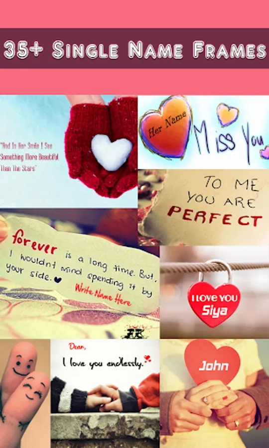 Love Name Pics is an amazing greeting app to wish someone special with some cool and beautiful pics and your name or his/her name on pic. This is the best idea to wish anyone offline.