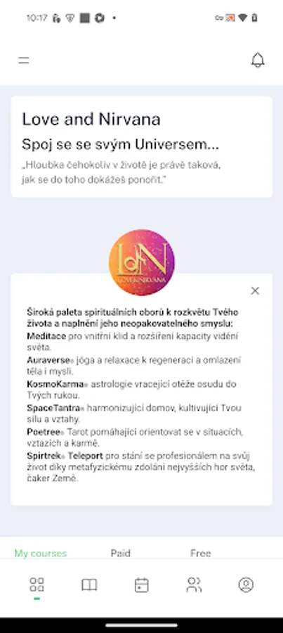 The Love and Nirvana application offers a wide range of spiritual disciplines that lead to the improvement of individual life areas, personal growth and finding an individual, unrepeatable destiny.