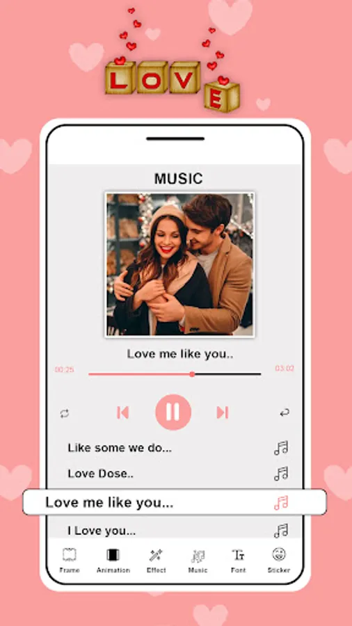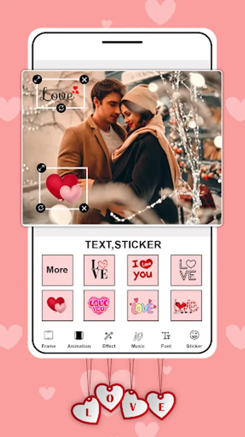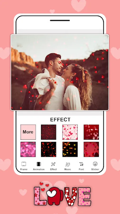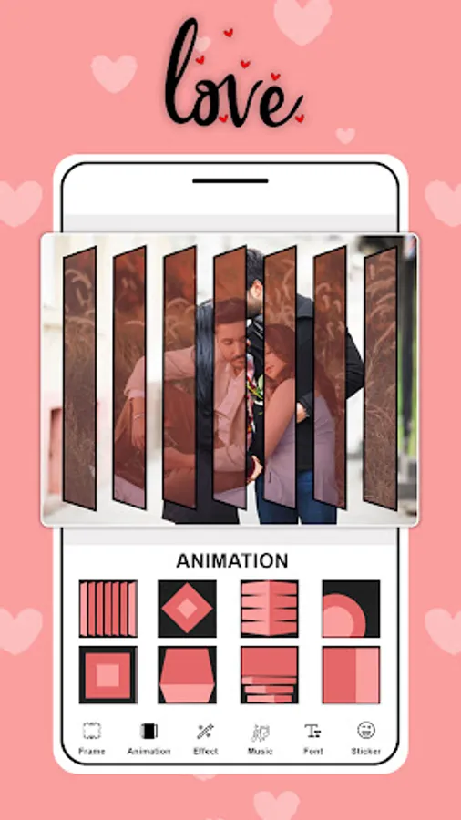 ♫ Select Love Animated GIF-Theme (Heart Animated GIF Effect) to make love with heart effect photo slideshow video maker.