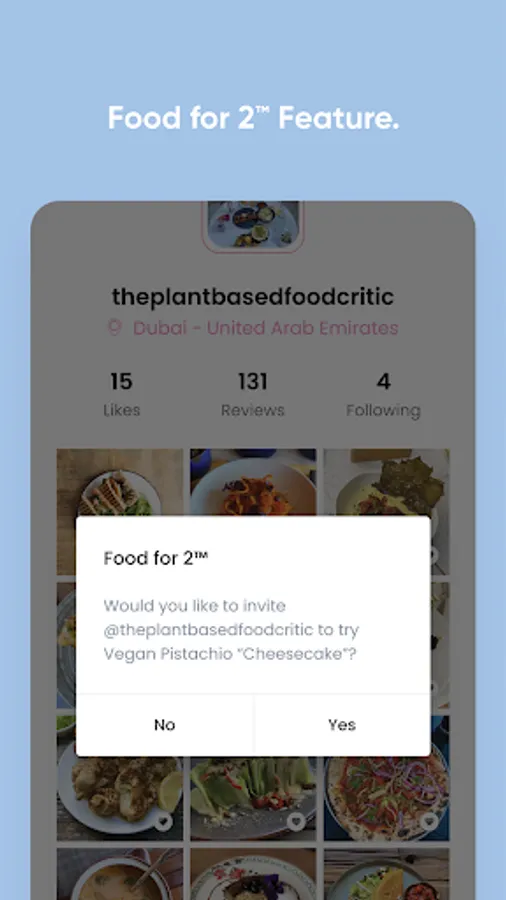 We've redefined how people search for food by creating an interface where you can easily view the actual plate from a restaurant and see individual plate ratings. And if you want to find someone to share a plate with, we've invented a Food for 2™ feature that breaks the ice for you. Make new friends or meet a potential life partner who shares similar interests in a healthier lifestyle.