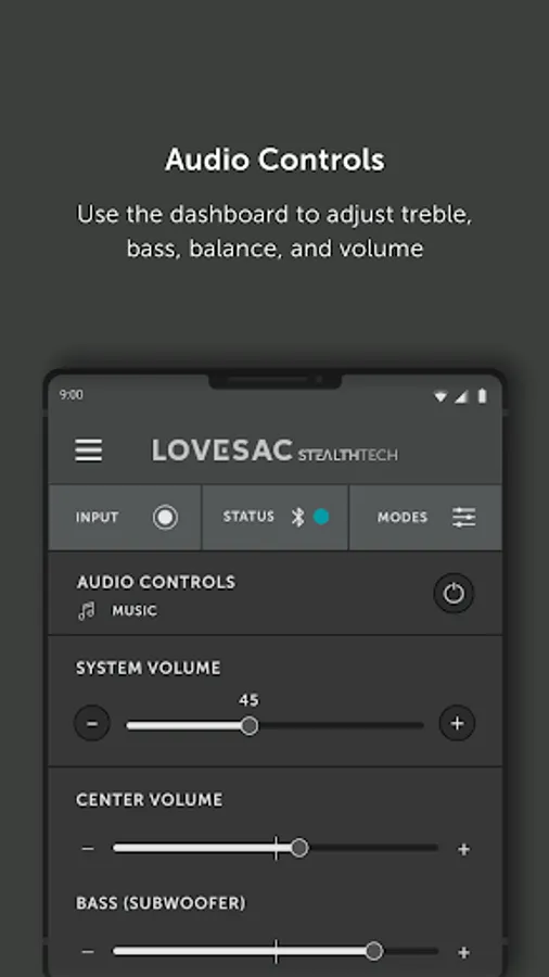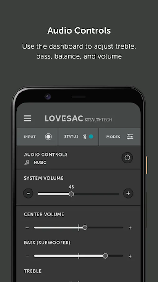 Use the app interface to control bass, treble, volume, and speaker balance via smartphone or tablet.