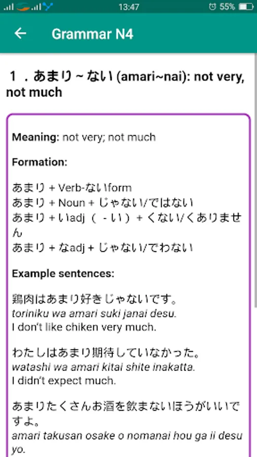 Support learn japanese grammar level N4 - 100% Offline - Free