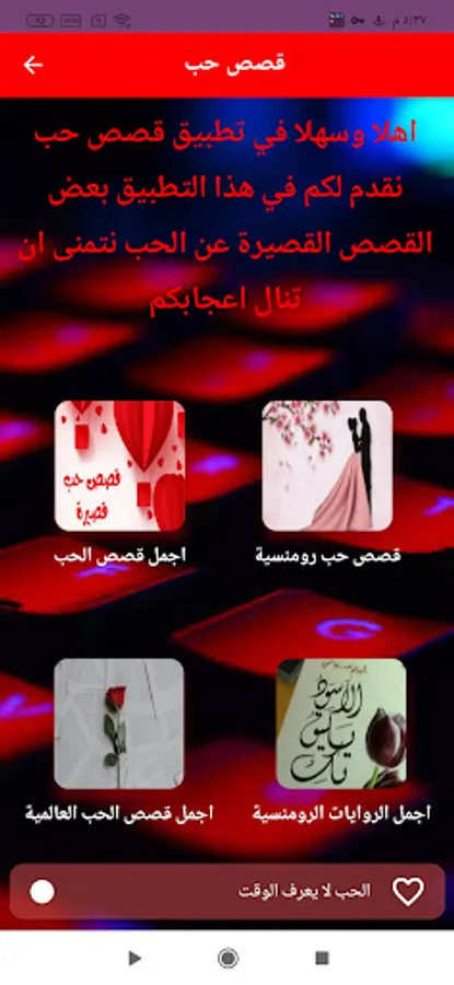 The application of short love stories offers you many unique and varied stories about love and romance, such as the love story of Antara, Abla, Qais and Laila and some other beautiful stories. The application is also characterized by its beautiful form and easy access to all stories