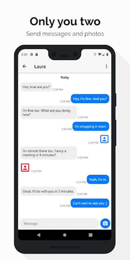 • In private chat you can write and exchange pictures. Pictures are deleted after 10 seconds.