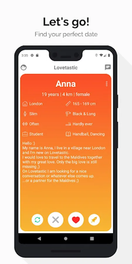 Thanks to our unique matching, you get to know the people who really match you. Successful dates are part of everyday life thanks to LOVETASTIC and will soon be the beginning of something great for you too. What are you waiting for?