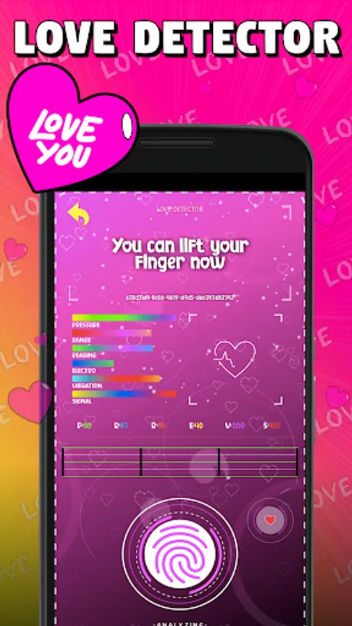 Take the free Love Test and after analyzing data such as heartbeat, temperature, vibrations and other parameters, it will show you the results of the love tester on the screen in a simple interface designed using attractive love graphics and wallpapers love and also use the love calculator test