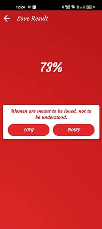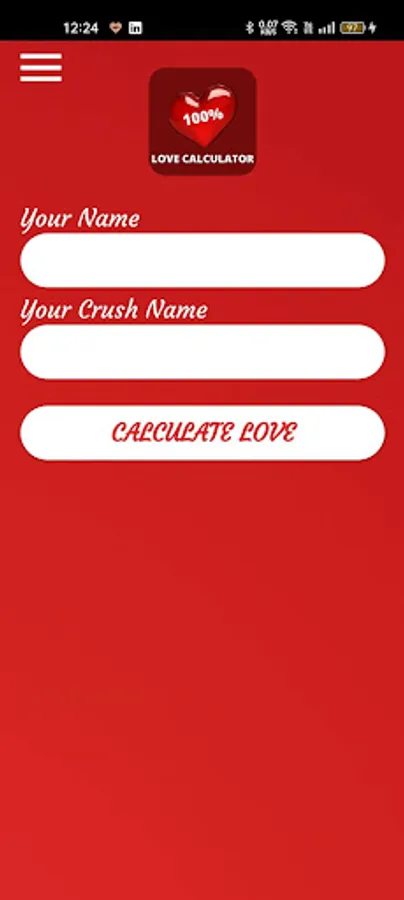 Test Love for free in love app and get your love test result in percentage. Just write your name and your crush name and press start.