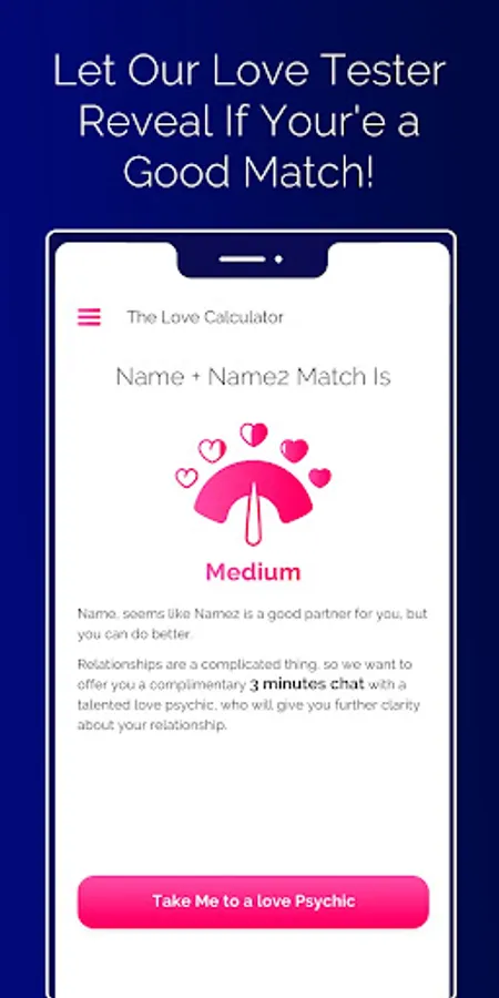 Get instant, real, and professional love & relationship advice. The Love Psychic Reading app has a unique love calculator wizard that will help you get clarity about your current relationship or love interest.